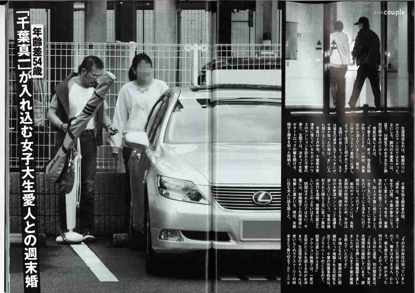 4月22日発売の『週刊新潮』(新潮社)がスクープしたもので、千葉はこの女子大生に入れ込み、現在は千葉のマンションで半同棲生活を送っているという。